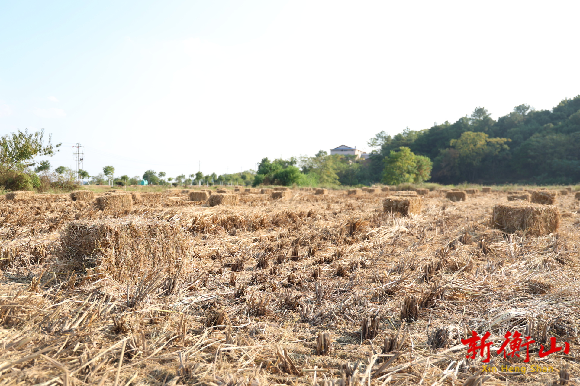 在衡山县萱洲镇依田村的农田里,一台秸秆打捆机来回穿梭,将水稻秸秆不断“吞”进,随后,一个个紧实规整的“小方块”就被“吐”出来,错落有致地排放在田间,等待装车拉运。